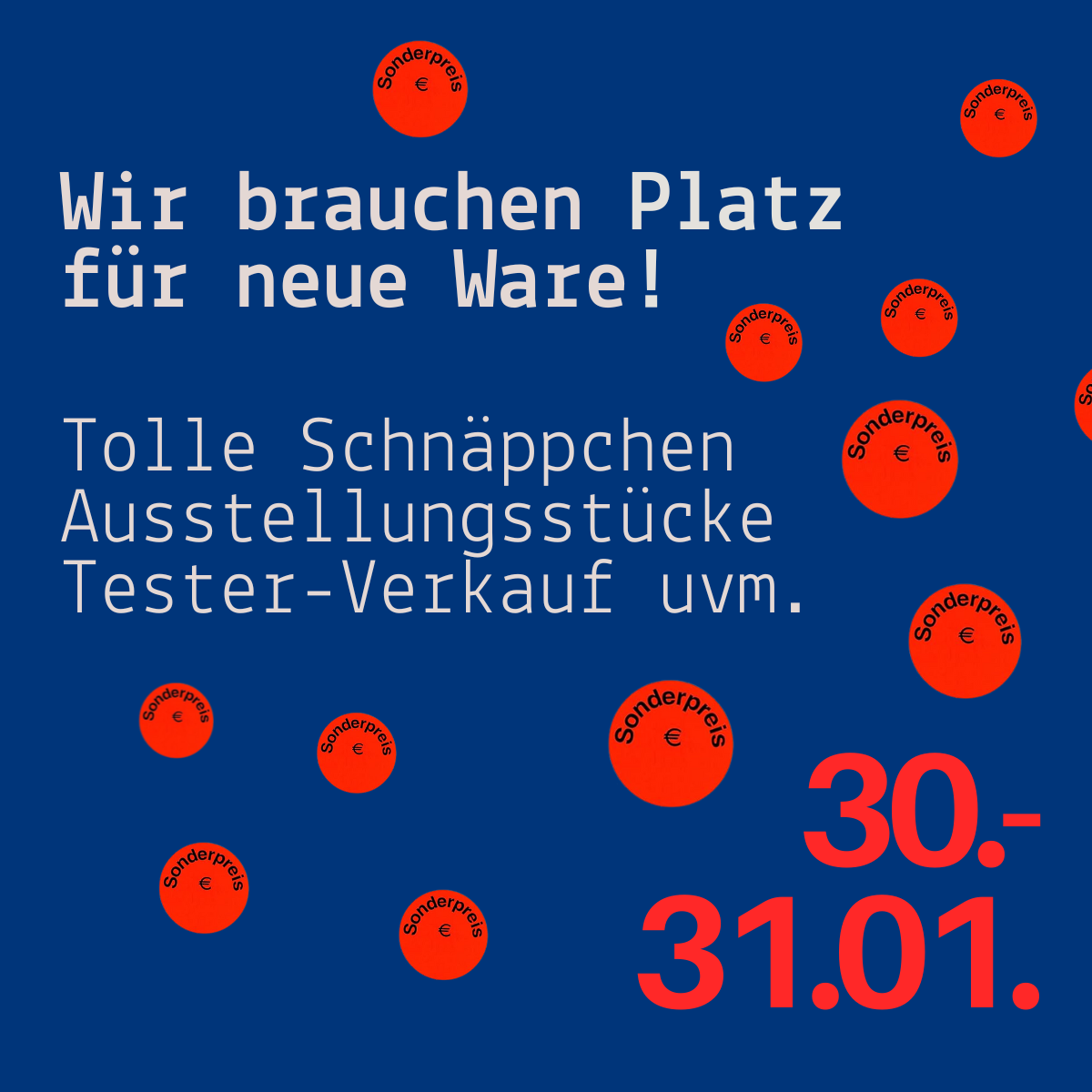 Freu dich auf Parfüm- und Kosmetiktester, Ausstellungsstücke, Stehenbleiber sowie Produkte aus vergangenen Saisons – zu attraktiven Spezialpreisen.