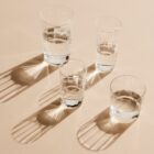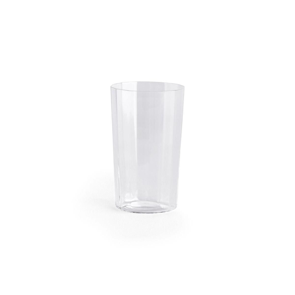 Das Angle Wasserglas M von HAY ist aus dünnem Glas mit facettierten Seiten gefertigt, was eine elegante Note verleiht und schöne Spiegelungen erstellt.